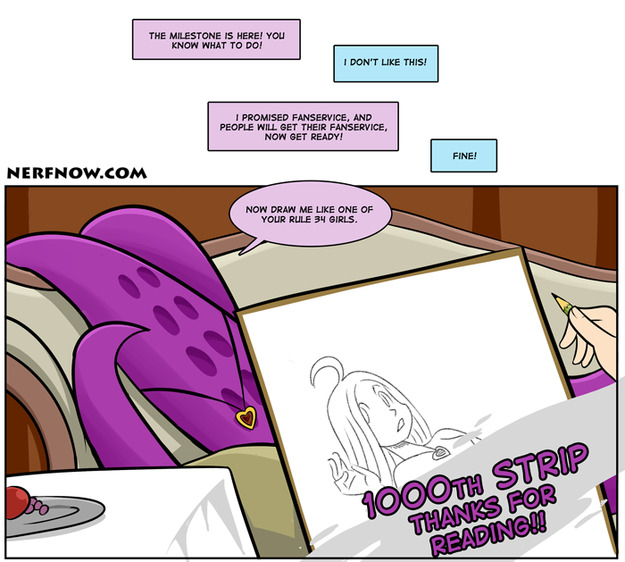 been a fan since the beginning. nice job jo. congrats on 1000 strips and i figured you would hit the trolls where they hurt lol. good job. here is to at least another 1000 strips of the awesome nerf now. cheers mate.