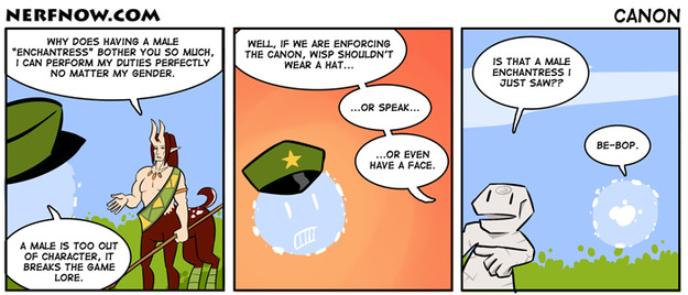 Remember pals: you DO NOT stare at a male enchantress butt. Unless you wanna be scarred. =P