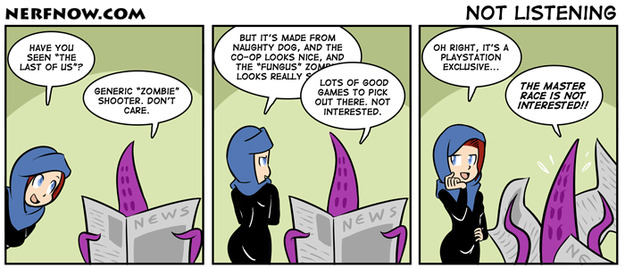 Well, there is always the "Watch the let's play on youtube" option left :) That's how I do it for exclusives and "not interested enough to play it" games at least. Jo did it too before: http://www.nerfnow.com/comic/628