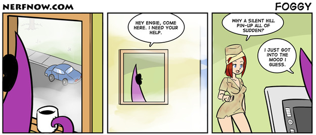 [url=#user_comment_305079]@RVN[/url]: I dunno, I think the idea of "Silent Hill pin-up" seems like enough of a silly juxtaposition to count as funny all by itself. On top of that, it's being inspired by a meteorological phenomenon that would normally be perfectly mundane, but in the eyes of a nostalgic gamer becomes meaningful.