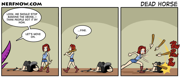 You're wrong. Bashing the XBone will be the source of many laughs for YEARS. I want this to be the all new ALL YOUR BASE.