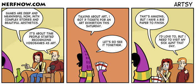 So wait. What is your opinion about people that like video games being arty? I know you don't care about art in video games obviously from the comic strip, but your comment seems to assume aspects about that demographic's line of thought.
