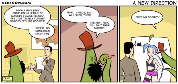 OMG! Do people really say this sort of thing about League of Legends? Wow. I guess they've never seen champs like Tristana, Annie or Kayle. Or maybe they're just talking about Anivia since she has massive breasts and is completely naked :P