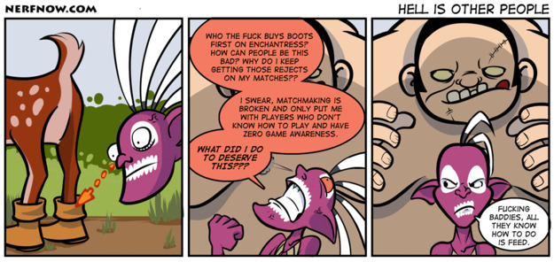 LoL yeah... I just love players who think they can make a realistic determination of your skill level by what items you buy within the first 10 seconds of the game. This still happens a lot in League of Legends. Oh and, by love, I mean hate.