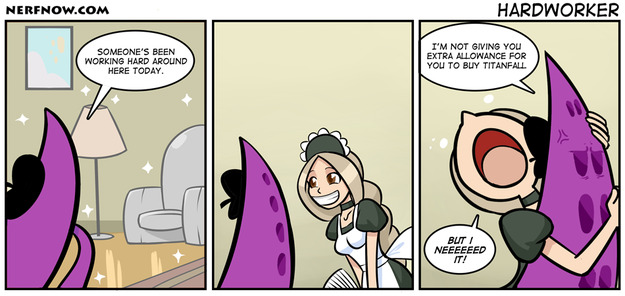 She just worked hard and cleaned up your house, even put on the maid outfit to amuse you, and you don't even want to buy her a game over it? Shame on you, Jo!