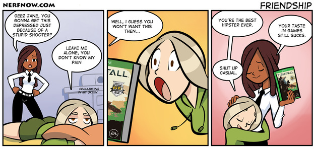 Being a casual and Hipster at once has got to be really hard. I mean old games are usually way more difficult than this crap they're putting up recently. Casual games started running over the world. Look at Hearthstone, look at LoL, World of Tanks, etc. (Exception in this case is Dark Souls :D )