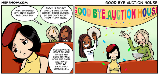 You know, I'm not really cool with the AH going away, especially in Hardcore land. I don't know how much has changed since I left about a year ago, but I remember my barbarian not being able to function without very specific stats on his weapons. And getting them to drop was next to impossible.