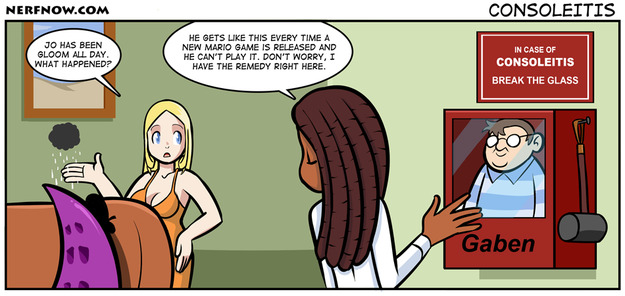 So the solution to his depression is to break out a doll of a guy who is vdeathly afraid of the number 3 and invented valve time? What do you do when he's depressed over a video game's ending break out a bioware doll?