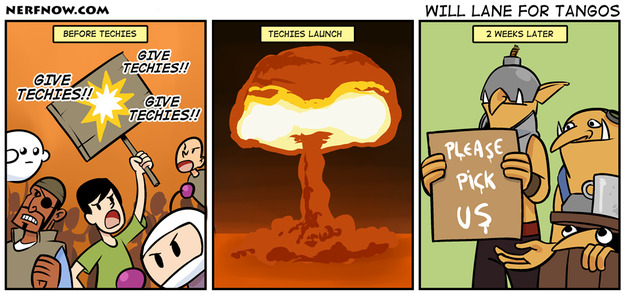 I know it's just a comic, but, otherwise, it would sound quite preposterous of you to propagate that the community isn't paying proper respect for Techies.