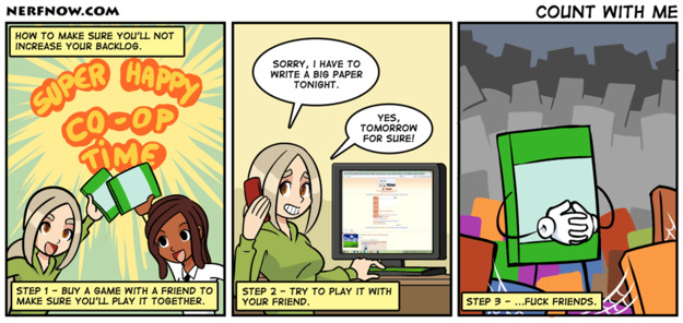 I have the opposite problem. I don't have enough co-op games (mostly by not owning them). And now that actually have some reliable friends I can play with. And since Civ 5 multiplayer is screwed (Why isn't more people complaining about this?!) I'm a bit screwed in the co-op territory.