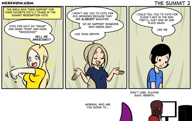 Don't worry Marie. People vote for Morgan because she shares the opinions of the average NN gamer. (She's more conformist than she thinks!) But you're bold enough to take the unpopular, gamer-camgirl route, a role that everyone looks down on, but everybody secretly thinks is hawt. Admit it y'all!