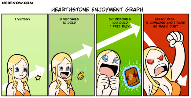 Hearthstone has one thing going for it, shiny battle/card effects. Everything else is despicable for a card game. Magic and Yu-Gi-Oh are still the best card games out there. If you're looking for something online though, SolForge looks promising. HS is full of BS.