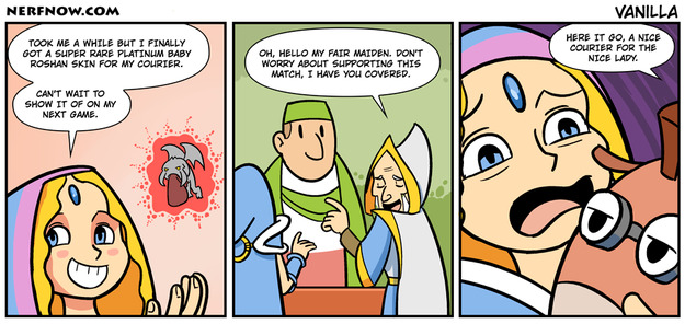 By the way, doesn't the courier change shape now so everybody can show off what courier they have? E.g., this one would change from the donkey to the baby Roshan whenever it delivered something to CM.