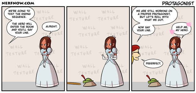 Wow this plot is making me self-conscious. I just finished a mini-demo today of a game I'm working on that explores the Damsel in Distress trope and the Damsel's role in it. (Though you do play as the Damsel off the bat. So that's different.)