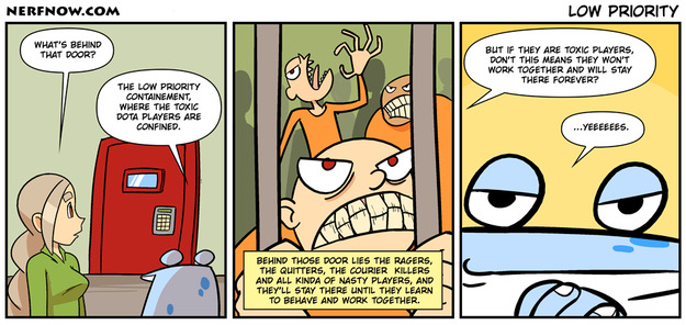 @Undying3132 those are the guys that buys couriers and feed the other team with them./Emd The thing with the low priority is that people are reporting bad players(not wanted to do anything bad in the game,but played bad) in there too
