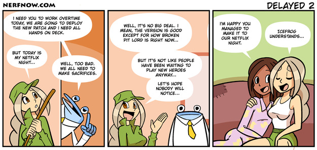 I predict almost none of the comments will be about the comic (since it's yet ANOTHER Icefrog Patch joke) and everything will be about the Morgane cuddle.