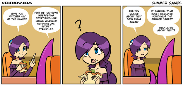 I like the little details such as the belly bulge zone-sama has after devouring that burger. Zone-sama is really cute in these Nerfnow's comic but i keep wondering when will they do it?