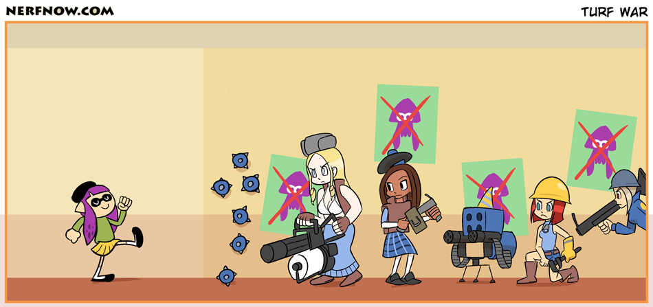 I'm sure someone will see this has me trying to put a Splatoon vs Team Fortress thing so I'll go ahead and say it's about the girls claiming their turf back instead of a game X vs game Y thing.