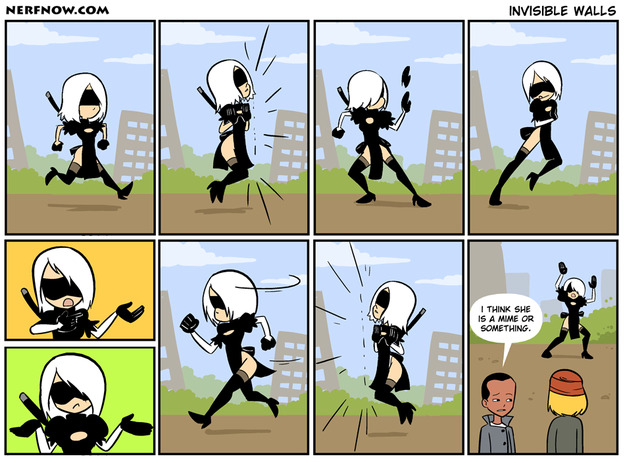 Now, I dislike a few things about Nier: Automata. Don't really hate much, other than one thing. The one thing I well and truly hate about it is the fucking stumble mechanic. Run into a bush or across a patch of rocks and watch 2B's beautiful ballerina ass stumble around like she's a newborn deer.