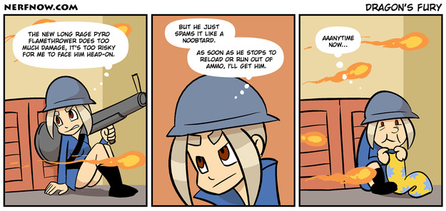 It will probably get worse when people learn how to use the Dragon's Fury. I thought the normal flamethrower would be completly useless now when Dragon's Fury came out, but I have noticed that many pyros are scrubs with it as they panic when you get in close range and 'dance' arround them.