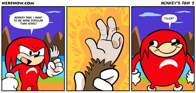 I don't know what's more hilarious and sad...that Jo resorted to this meme, or that the first thing I noticed was that he drew Knuckles' weird white thing in his chest backwards?