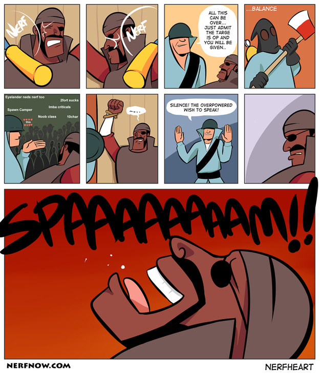 It takes a real degenerate to believe any class is even borderline OP in Team Fortress 2. First off, no class can be game-breakingly overpowered unless it gives one team an unfair advantage. Thus, this type of imbalance is impossible because both teams have access to the same number of all classes.