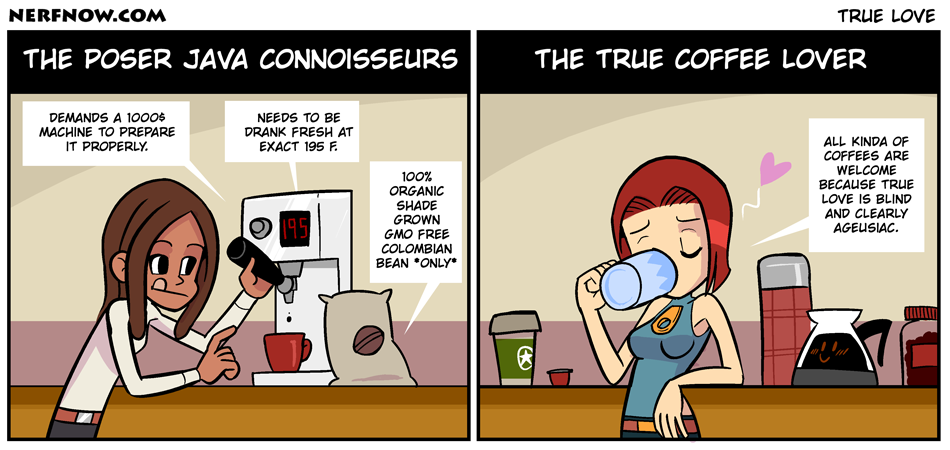 Some coffee enthusiats are so demanding on their beverage which make me think if they really enjoy it. If I say I like games but only play a single game on the original console on a CTR TV do I like games or I am just really just a Melee player?