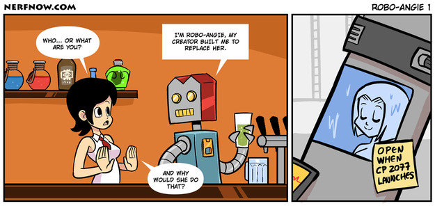 angie forgot to put fanservice to her robot,she will be lucky if any technophile customers visit the store.