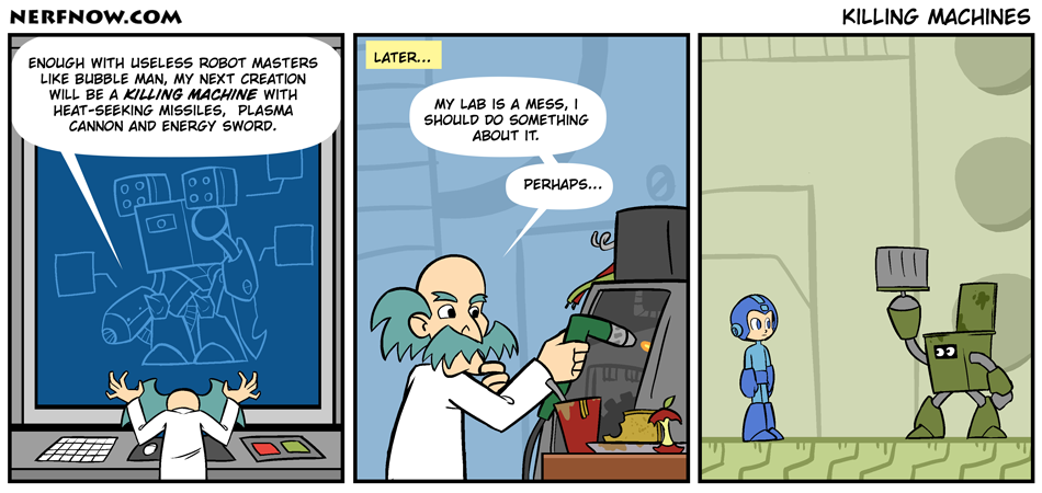 I like to think Dr. Wily create silly robots because his mind wanders around and his latest anti-Megaman robot end up as washing machine halfway thru the project.