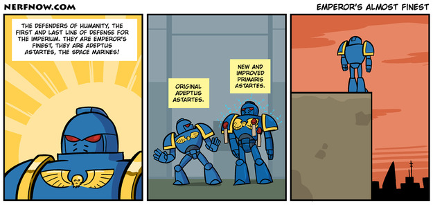 For me who only read the novels, the Primaris are a (somewhat*) logical upgrade to the old marines, especially after Girlyman's awakening and the need to unfuck things (FFS, they had almost ten thousand years without ANY innovation)