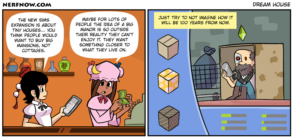 Back to the comic, while I enjoy the idea of having a big manor unless I was filthy rich and had a team of people caring about it I would prefer a smaller place.
