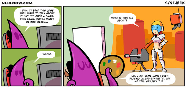 Synthetik! Good game! I'll admit I haven't seen many things advertising it. However one of the few people I've seen promoting it was Sseth which got me into it so hey, quality over quantity I guess.