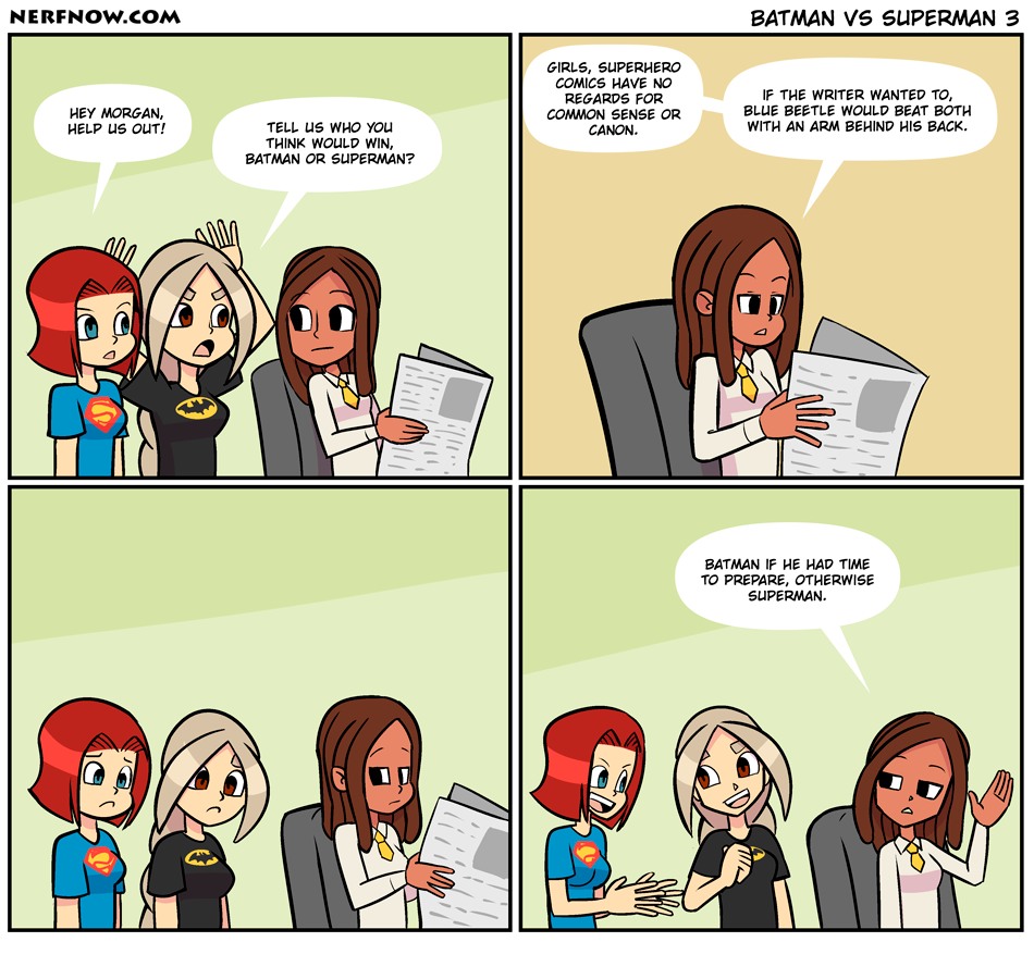 Like I said before, just the fact Batman vs Justice League is even an argument shows how ludicrous the writing is, prep time or not.