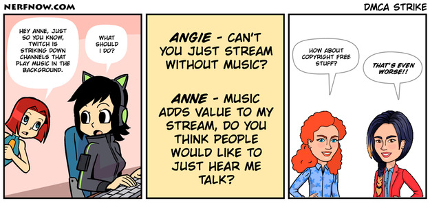 Well, I mostly meant like, ingame music? If Twitch is chopping people because of that then there's no helping'em. As for remix's there are plenty of services that aren't shit that offer good shit. OCremix comes to mind, and lots of people on Soundcloud and Bandcamp.