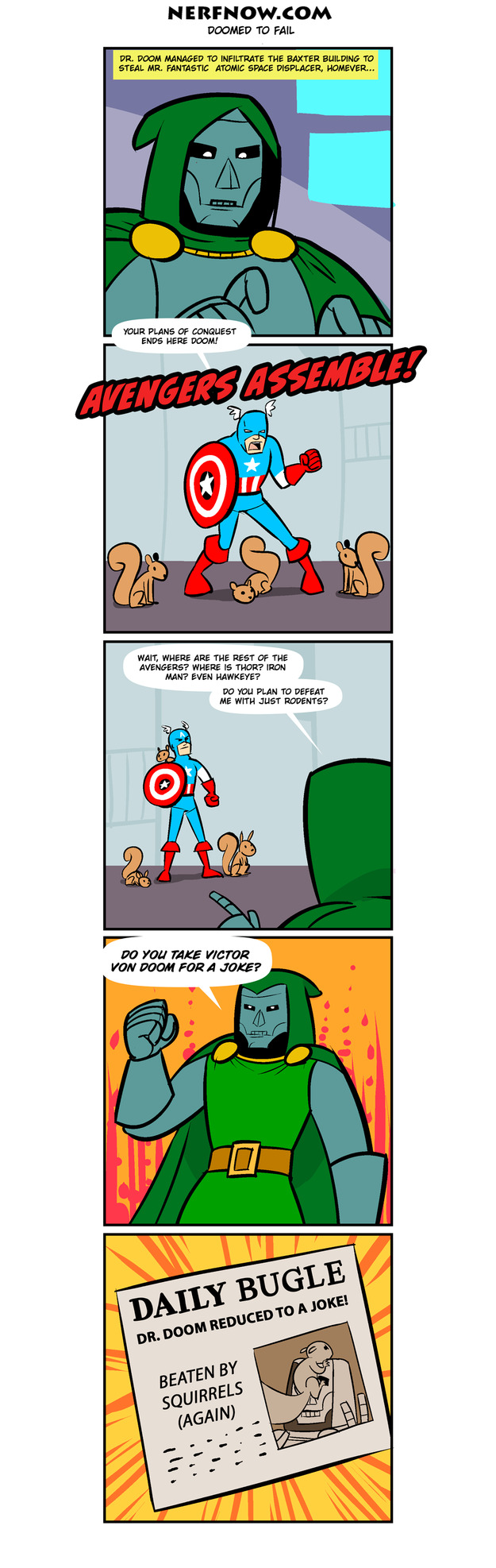 He's no Lex Luthor! Did you know that Lex Luthor stole FORTY cakes? That's as many as four tens. And that's terrible. I bet Doctor Doom hasn't ever stolen ONE cake.