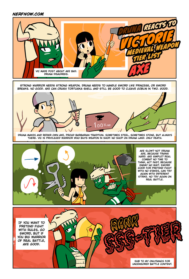 Meowcate reacts to Druna reacting to Victorie : "A *golden* axe ? using such a soft metal for such a strong weapon ? Yes, make out with it, because that's the only thing this is good for."