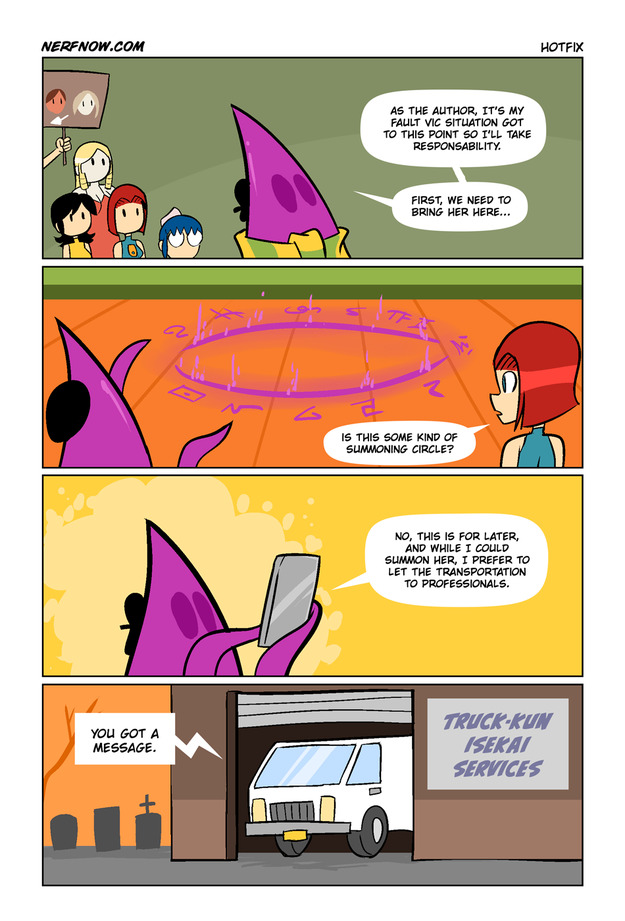 Are you sure it's safe to use the God of Isekai? Truck-kun has an impressive success record, but he also imparts some of his divinity unto those he hits. Many a Truck-kun victim has become OP. To paraphrase an old laser sword wizard, "Vic could become more powerful than you can possibly imagine."