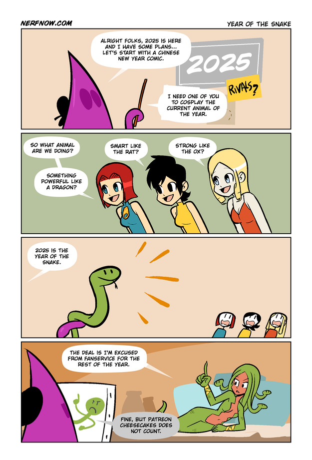 1. Just keep Morgan cosplaying snakes through the year, there is the snake girl from X-COM, Tuki from Shantae, etc. Could have another girl cosplaying as the last one now and another the next one in December.