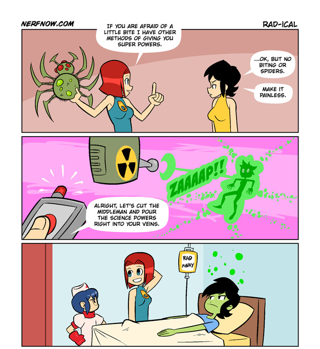 I though about making her getting cancer (turning bald) but I think cancer and humor don't mix well together. Making her sickly green has the same effect without bothering anyone. Win / win.
