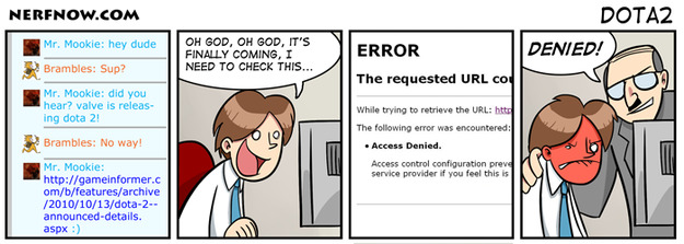 The third panel isn't a blocked site, it's just that gameinformer went down after DOTA 2 was announced.