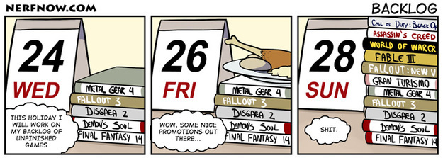 i dont get this backlog much, only time i ever get backlog is when its christmas and steam goes nuts with sales, and recently with the 5 indie games for 5 bucks thing daily, ive bought every pack so far, but im skiping todays because none looked interesting