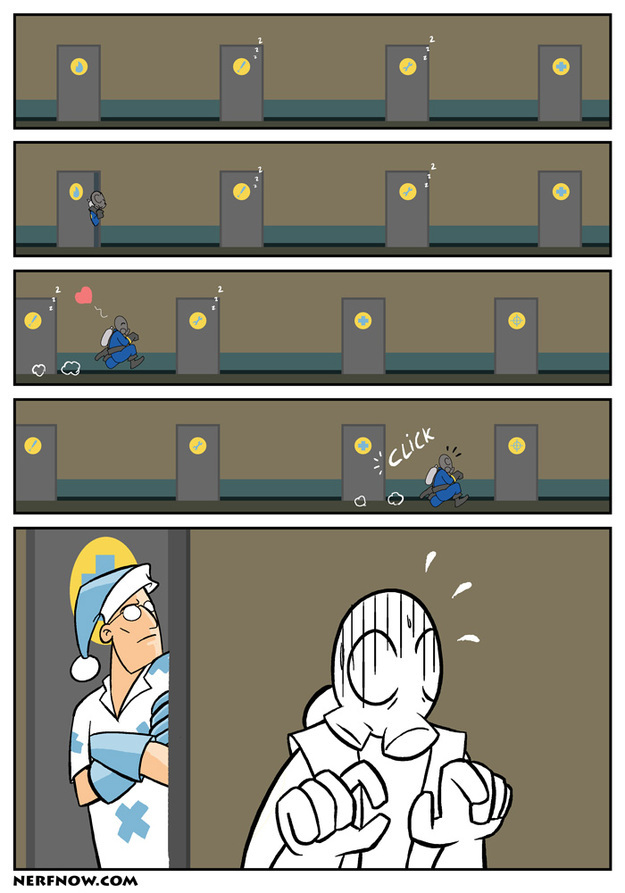 Last panel is by far my favourite panel in the entire comic, I love the portrayal of the medic as a stern guy in his PJ's. xD