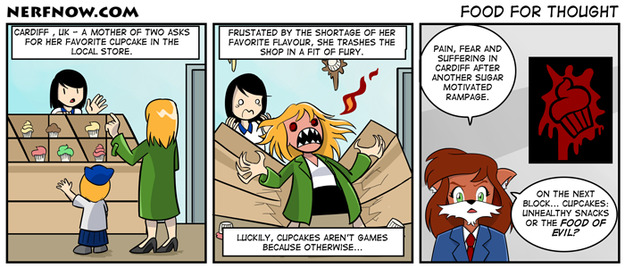 Breaking news. We have just learned that the violent cupcake mother once walked past a store that sold the video game Cooking Mama. With this new evidence, calls are growing worldwide for a massive video game ban to halt the violence.