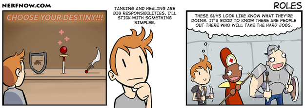 Ah yes, this is so true. Healing and Tanking are vocations, you really need like it. Being a DPS shares the responsibility, but it's WAY lower; you just kill stuff and don't stand of fire (which's hard for some people)
