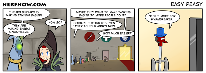 By making tanking easier, hopefully more people will do it. I am not a fan of the holy-trinity anymore (tank, dps, healer) but WoW is built on it and this is a good solution for the long DPS queues.