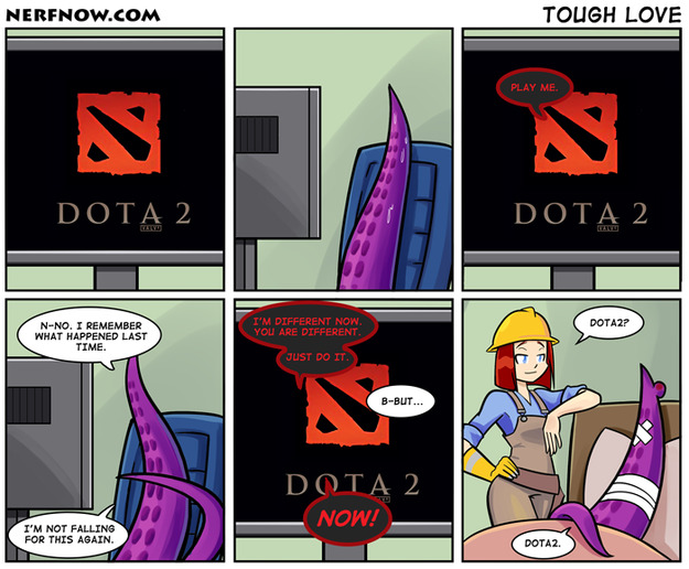 I find it kind of funny that it is a comic about Dota 2, but there is advertisements on the sides of the page for League of Legends