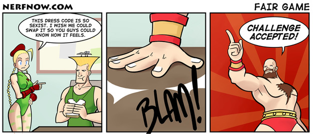 How would women sexualize Zangief? He's a muscle man, that's what they're going to show. And if they create a new character design, well there's always a bishou character. Are we supposed to cry sexism over that? I'm still of the opinion that this is still a fair two-way street.