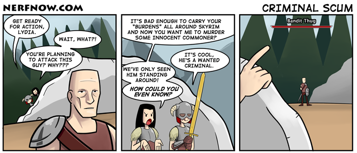 Skyrim is a game with repercussions. Kill that guy on the road and you may find yourself being hunted by the whole county.