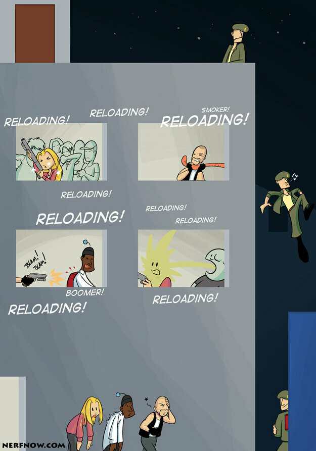 If Bill had jumped down before they went in, there would be no zombies inside the building! D: