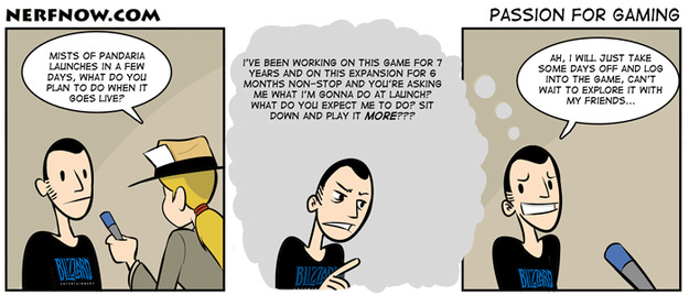 New Dev Thought Text: I've been working on this watered-down joke of an expansion for the last 12 months, and you expect me to actually but and play it? Fuck no, my Charr Mesmer is more important than playing WoW